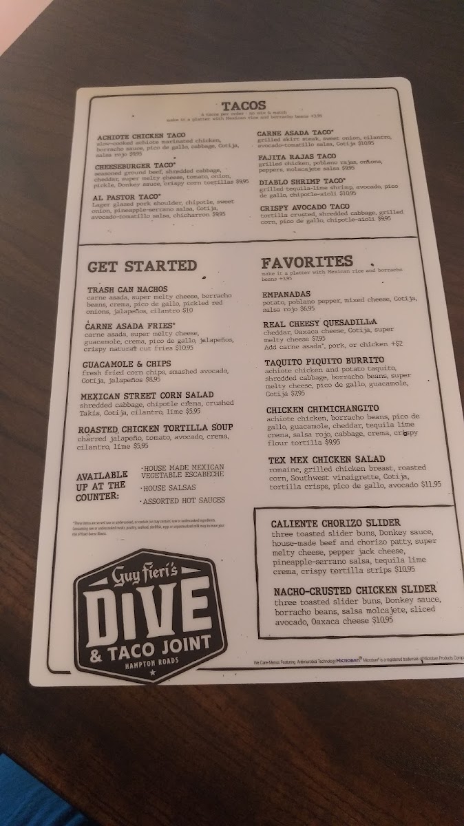 Guy Fieri's Pizza Parlor Menu